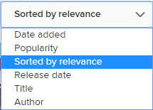 - Sie können Ihre Ergebnisse nach Relevanz, Beliebtheit, Hinzufügedatum, Erscheinungsdatum oder alphabetisch nach Autor oder Titel sortieren, indem Sie das Dropdown-Menü verwenden.