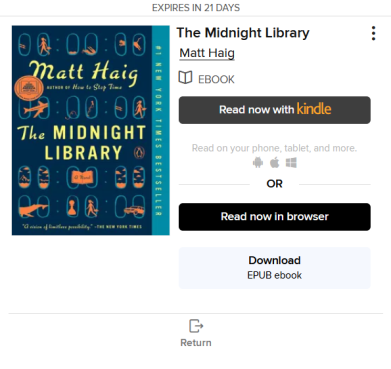 Your library may offer multiple reading options for borrowed ebooks. These options can include: